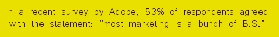 A recent survey from Adobe found that a resounding number of respondents view marketing and PR as B.S. We shouldn’t write off that poll result as unjust. I feel, in many cases, commercial messaging continues to be less “engaging”. Marketing extraordinaire Heidi Cohen recently offered tips to debunk marketing myths mentioned in the Adobe surveys on her blog. Meanwhile, I want to talk about the content of ads.